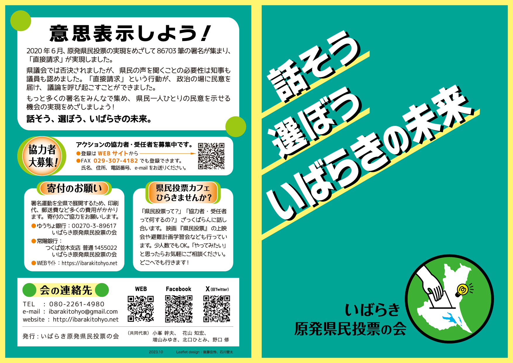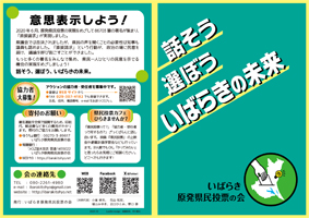 茨城県の東海第二原発は、日本初の大型原子力発電所として1978年に営業運転を開始しました。東日本大震災以降は稼働を停止していますが、2018年、原子力規制委員会が20年の運転延長を認可しました。原発の存廃は、社会的にも、経済的にも、県民の生活に大きな影響を及ぼします。再稼働には周辺6市村と茨城県の同意が必要ですが、その判断には、広く県民の意思を確認することが必要だと思われます。そこで私たちは、県民同士が話し合い、一人ひとりがそれぞれの選択を表すことができる「県民投票」を実現させるために、本会を発足しました。